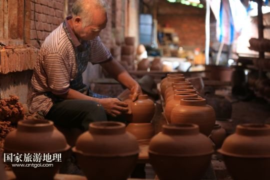 國(guó)家旅游地理 廣西河池8月6日訊 8月4日,顏福友師傅在廣西宜州市郊區(qū)他的制陶作坊里給陶器上釉。在廣西宜州市郊區(qū),65歲的顏福友師傅經(jīng)營(yíng)著他的傳統(tǒng)制陶作坊,作坊里除了顏師傅,還有他的老伴和兩名幫工。顏師傅14歲開(kāi)始當(dāng)學(xué)徒制作陶器,如今掌握著許多手工制陶的獨(dú)門(mén)絕技,在作坊里,幫工只負(fù)責(zé)干體力活,制陶的關(guān)鍵部分都是顏師傅親手完成的。由于顏師傅制作出的陶器質(zhì)量好,許多花卉盆景、釀酒、食品等工廠單位向他訂做陶器產(chǎn)品。但是由于手工制陶辛苦單調(diào),效率低下利潤(rùn)不高,顏師傅的手藝面臨著斷代失傳的危險(xiǎn)。 /新華社發(fā)(覃剛 攝)
