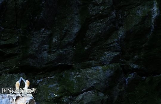 塘鵝在圣基爾達(dá)島的巖壁上嬉戲(7月20日攝)。