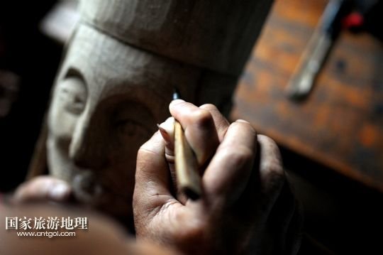 譚圣慈老人今年72歲,從22歲開始學(xué)雕刻儺戲面具,迄今,已經(jīng)堅持了50年。老人說,他制作的面具因工藝精湛,造型優(yōu)美,曾吸引遠方的客人高價購買。但是,卻少有人來學(xué)習(xí)面具的雕刻與制作。儺戲于2006年被列入非物質(zhì)文化遺產(chǎn)名錄之后,政府加大了保護力度,但因為面具的制作周期長、工序復(fù)雜,銷售渠道少等原因,仍無法吸引年輕人學(xué)習(xí)雕刻的興趣。為了收到心儀的徒弟,傳承這獨到的技藝,他到處發(fā)布免費收學(xué)徒的信息。在他的堅持下,今年暑期,鄉(xiāng)里有兩名對面具制作感興趣的男孩來到譚圣慈身邊學(xué)藝。老人高興地說:“我給他們講很多故事,就是希望他們能對此提起興趣,愛上木面雕刻,別讓這老手藝失傳了。” /新華社發(fā)