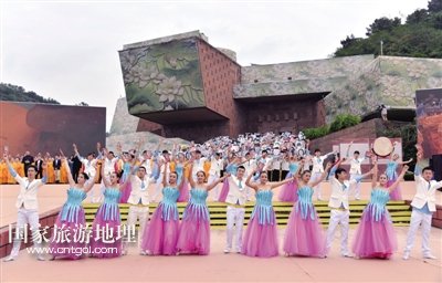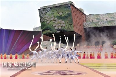 開(kāi)幕式上,以“慈光千年·與夢(mèng)同行”為主題的旅游演出《一山·一佛·一世界》,分為序——《慈光·千年》、上篇——《一山·情依舊》、中篇——《一佛·慈天下》、下篇——《一世界·心若在》、尾聲——《與夢(mèng)·同行》五大段落,通過(guò)梵音梵樂(lè)、音樂(lè)舞蹈等形式,精彩演繹樂(lè)山彌勒文化、普賢文化、漢唐風(fēng)韻等文化內(nèi)涵。/三江都市報(bào)