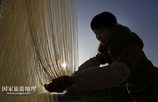據(jù)了解,秦家圈村有冬季制作手工拉面迎新年的傳統(tǒng)。村民經(jīng)和面、發(fā)酵、盤條、拉面、晾曬等多道工序,手工制作成細(xì)潤綿長、風(fēng)味獨特的面條。制面期間,潔白的線面宛若銀絲在風(fēng)中飄蕩,成為鄱陽湖畔一道別致的鄉(xiāng)村景觀。 /新華社發(fā)(傅建斌 攝)