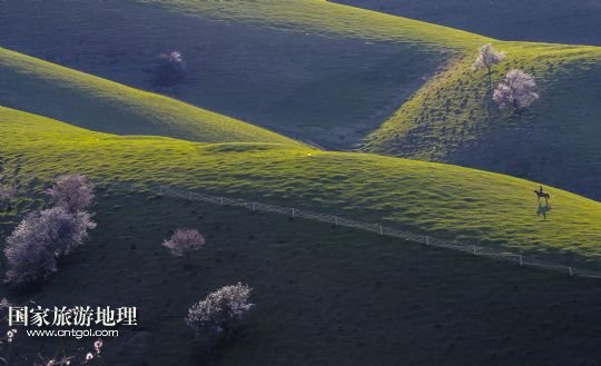 國家旅游地理 新疆伊犁4月12日訊 新源縣吐爾根鄉(xiāng)雪山映襯下的一棵杏樹(4月9日攝)。進入四月,位于新疆伊犁哈薩克自治州新源縣吐爾根鄉(xiāng)的原始杏花林進入盛花期,杏花林鑲嵌在山間,猶如一幅美妙的畫卷。 /新華社記者 趙戈 攝