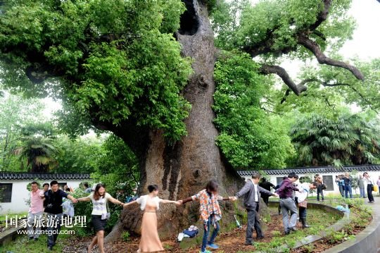 國(guó)家旅游地理 江西上饒5月18日訊 5月17日,游客在江西省德興市??阪?zhèn)??诖迩旯耪僚酝嫠!=魇〉屡d市??阪?zhèn)??诖逵幸豢?800多歲“高齡”的巨型古樟樹(shù),歷史上曾遭受過(guò)多次雷擊、火災(zāi)等,其中最近的一次發(fā)生在2010年10月1日,由于村內(nèi)孩童進(jìn)入可容納幾十人的樹(shù)洞內(nèi)玩耍,不慎引發(fā)火災(zāi),致使大火從樹(shù)洞里燒起,讓這棵千年古樟幾近滅頂。此后,當(dāng)?shù)卮迕褡园l(fā)捐款近6萬(wàn)元,請(qǐng)來(lái)有關(guān)專(zhuān)家救治。經(jīng)過(guò)近4年的精心護(hù)救,如今這棵千年古樟再度逢春,枝繁葉茂,吸引了各方游客前來(lái)觀(guān)賞。 /新華社發(fā)(卓忠偉 攝)