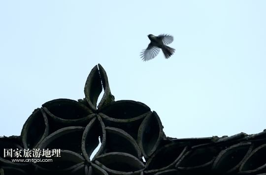 5月23日,一只鳥兒從板寮村的吊腳樓頂飛過。