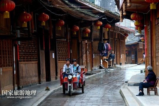 國家旅游地理 湖北恩施5月25日訊 5月24日拍攝的板寮村老街。在湖北西部山區(qū)恩施土家族苗族自治州宣恩縣深山里,一方難得的平川上坐落著“川鹽濟湘”“巴鹽古道”中的一個驛站——板寮村。村里有500多戶人家,200多年前這里作為古道驛站,騾馬蕭蕭,商賈云集;如今這里是全國“美麗鄉(xiāng)村”創(chuàng)建試點村,吊腳樓民居整齊排列,醫(yī)院、學校等一應俱全,一座“袖珍小城”讓農民們盡享“就地城鎮(zhèn)化”帶來的舒適生活。