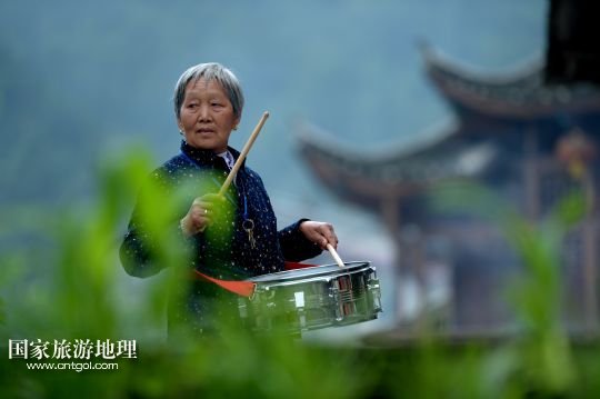 5月23日,板寮村文藝宣傳隊的老人在練習打鼓。