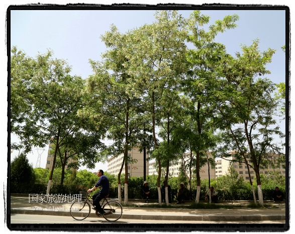 國家旅游地理 甘肅平?jīng)?月31日訊(通訊員 鄭兵 攝影報道)日前,甘肅省平?jīng)鍪谐菂^(qū)各大主要街道兩旁的槐樹開滿花朵,一簇一簇,一串一串,白的像雪,美得像畫,冰肌綽約,清素高雅,滿街道彌漫著槐花的馥郁香氣,讓來往的行人為之陶醉。宋朝大文豪蘇東坡曾有詩云:“槐林五月蕩瓊花,郁郁芬芳醉萬家。”據(jù)悉,槐花除了觀賞意外,用槐花做的湯飯還有開胃解毒瀉火等功效,是食藥兩用的的極品,被譽為“天賜的禮物”。