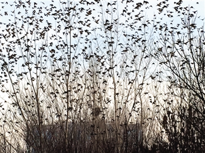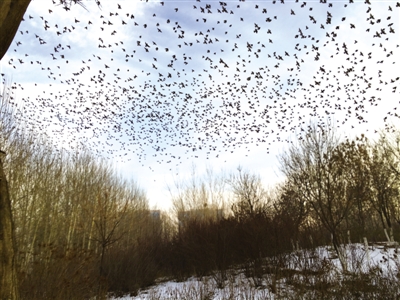 2015年12月30日下午,我在銀川市興慶區(qū)北塔公園游覽。走到北塔東北的樹林邊,突然看見一棵有些怪異的樹——數(shù)九寒冬,為何還有這么多樹葉?仔細(xì)一瞧,哪是什么樹葉,是數(shù)千只麻雀在樹上“開會”。密密麻麻,嘰嘰喳喳,無拘無束。我拿出手機,剛拍了幾張,不知是聽了什么號令,麻雀們“散會”了,瞬間全部飛向藍(lán)天,一個個狀如小飛機??吹贸觯槿競兺ο矚g銀川,活得挺自在。(通訊員 蓮子)