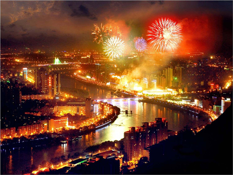 圖為 蘭州百里黃河風(fēng)情線夜景