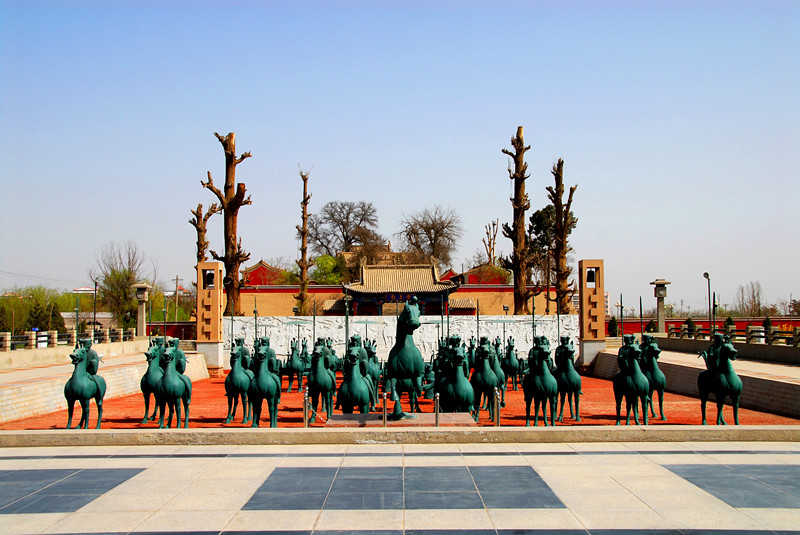 圖為中國(guó)旅游標(biāo)志馬踏飛燕出土地、全國(guó)重點(diǎn)文物保護(hù)單位、國(guó)家4A級(jí)旅游景區(qū)——武威雷臺(tái)景區(qū)